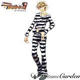 白黒のボーダーラインは誰もがイメージする囚人服でも、首まわりが大胆に開いたルーズな上着と、細身のパンツになればどこかスタイリッシュ。リングネックレスと原作に忠実な手書き風囚人番号が貼れるアイロンプリント紙付き!(アイロンプリントはお客様自身で転写していただく仕様となっております。) 【サイズ】B:79-87cm W:62-66cm H:82-88cm 【着丈】上着55cm パンツ:97cm 【セット内容】上着・パンツ・ネックレス・アイロンプリント(囚人aj |